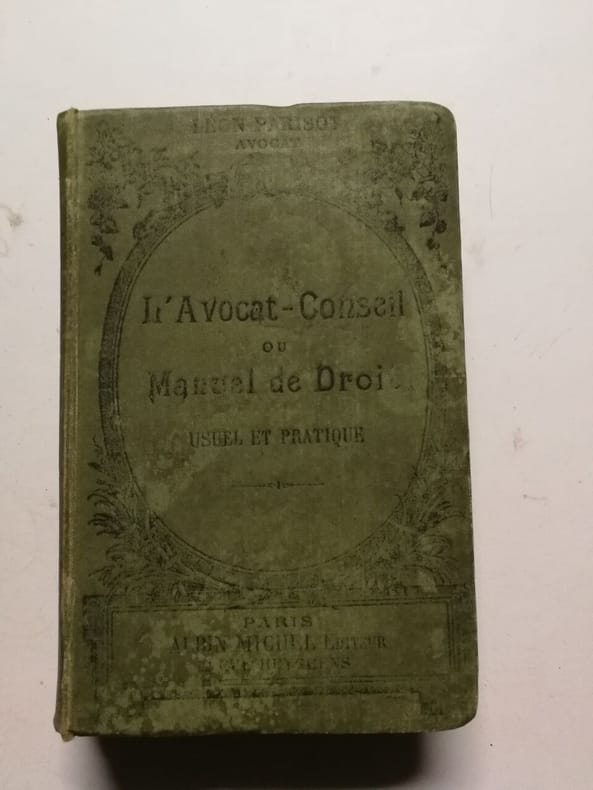 l'avocat conseil ou le conseiller en affaires, à l'usage des pères de famille, propriétaires, locataires, fermier, commerçants, employés, entrepreneurs, ouvriers, voyageurs, cultivateurs, vignerons, contenant l'exposé pratique de toutes les lois anciennes et récentes. Les formules de tous les actes usuels sous seing privé par Léon Parisot.Paris, Albin Michel, éditeur - sans date, vers 1920 - 1027 pages.Reliure plein carton vert éditeur. Dos lisse avec titre et auteur. Pas de rousseur. Très bon état. Format in-12° (18x12).