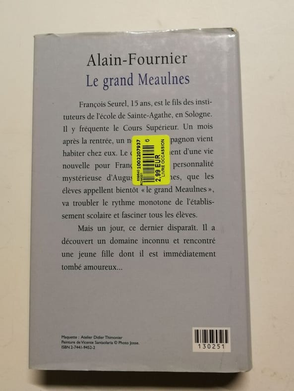 Éditions G. P Sans date. Le Grand Meaulnes raconte l'histoire d'Augustin Meaulnes un adolescent mystérieux qui arrive dans un village et bouleverse la vie du narrateur François Seurel. Le récit suit la quête obsessionnelle de Meaulnes pour retrouver un domaine enchanté et une jeune femme rencontrés lors d'une aventure onirique explorant les thèmes de l'adolescence des rêves perdus et de la nostalgie