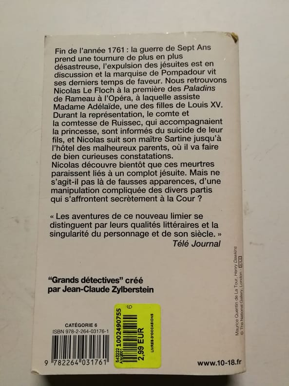 10 x 18 2012 377 pages poche. 2012. Poche. 4 volume(s). 377 pages. 4 livres de Parot: L'Enigme des Blancs-Manteaux : Enquête dans le Paris du XVIIIe siècle + Le cadavre anglais + l'homme au ventre de plomb + Le noyé du Grand Canal