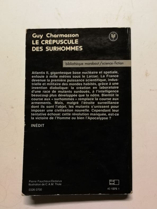 Comics Pocket Dos carré collé 1975 "In-12 (13 x 19 cm.), dos carré collé, couverture illustrée, vignettes noir et blanc, 164 pages, ""Le crépuscule des surhommes"" ; mors et plats frottés, coins cornés, par ailleurs assez bon état général. Livraison a domicile (La Poste) ou en Mondial Relay sur simple demande."