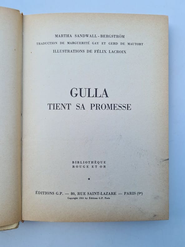 Éditions G.P Sans date. Ce livre fait partie de la saga de Gulla et décrit la vie très difficile des paysans en Suède au début du XXe siècle. Paru dans les années 50-60 il était particulièrement apprécié des jeunes filles de l'époque