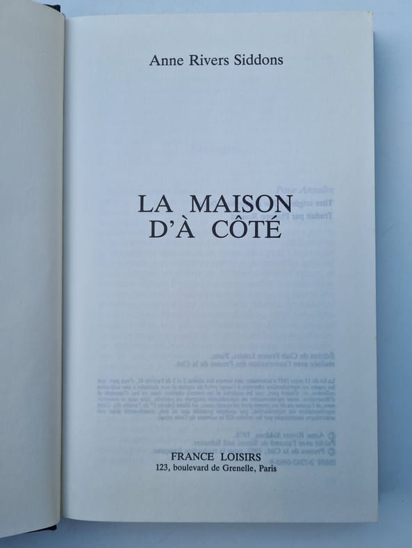 FRANCE LOISIRS Sans date. Une maison d'architecture contemporaine apparemment idéale est en réalité habitée par une force maléfique qui s'attaque successivement à ses propriétaires entraînant malheur folie et mort. Les voisins impuissants assistent à cette série de drames et craignent d'être les prochaines victimes
