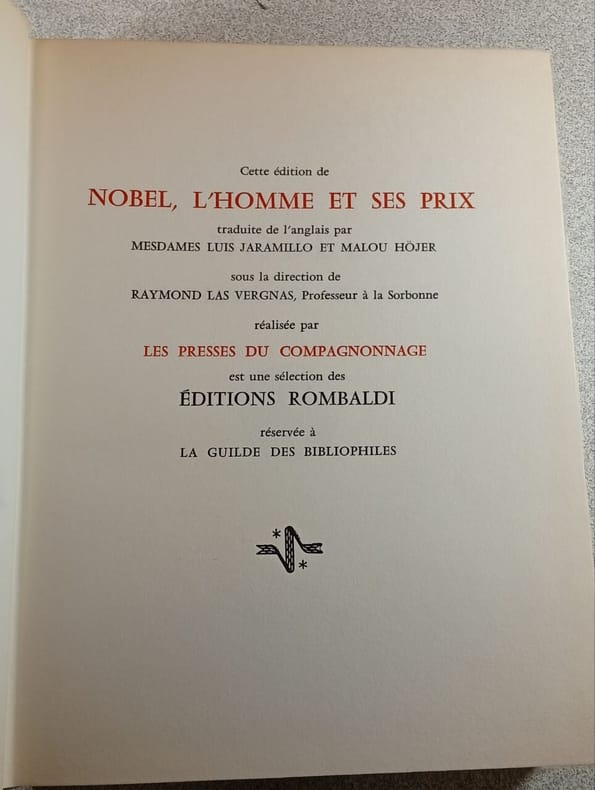 Academie suédoise / Fondation Nobel / la Guilde des Bibliophiles, 1901-70, gr. in-8°, chaque vol. a. env. 320 p. ill. de nombr. planches en couleur et en noir, reliure en simili-cuir originale, plat ill. avec un dessin en couleur d’après Pablo Picasso. Bel exemplaire.