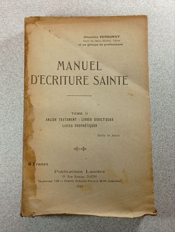 Lumière. 1925. In-12. Broché. Etat d'usage, Couv. défraîchie, Dos abîmé, Quelques rousseurs. 780 pages. Quelques pages non coupées et quelques une désolidarisées. dos abimé. Manque coiffe de tête et mors fendus.. . . . Classification Dewey : 264-Le culte