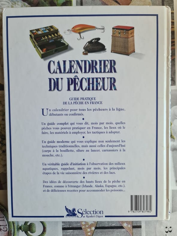 Sélection du Reader's Digest 1997 2x28x22cm. 1997. Relié. Ce livre est un guide pratique mensuel pour les pêcheurs à la ligne en France présentant mois par mois les techniques de pêche les lieux appropriés le matériel nécessaire et les tactiques à adopter. Il inclut également des recettes et des suggestions de découvertes halieutiques en France et à l'étranger