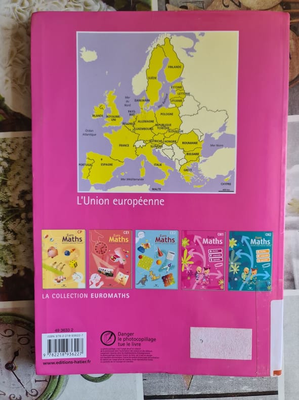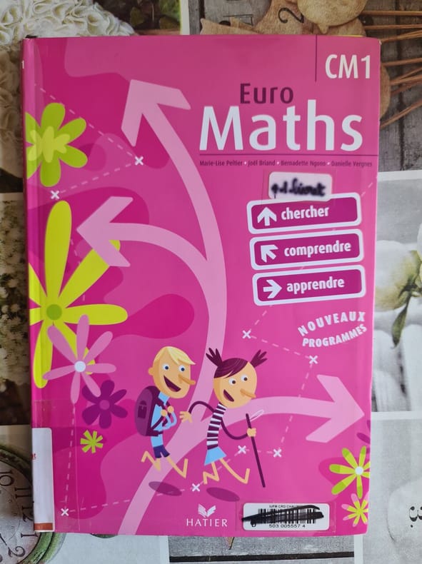 Hatier Sans date. Euro Maths CM1 est un manuel de mathématiques pour le niveau CM1 conforme aux programmes 2008. Il propose une progression organisée en 5 périodes de 6 à 7 semaines avec des unités de travail correspondant à une page ou double page du manuel et inclut des exercices de réinvestissement ou des prolongements