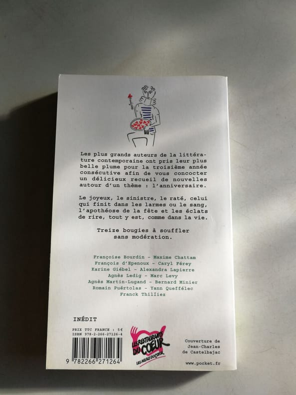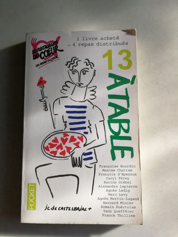 POCKET 2023 256 pages 10 9x17 5x1 5cm. 2023. pocket_book. 256 pages. « 13 à table ! » est un recueil annuel de treize nouvelles publié par les éditions Pocket au profit des Restos du Cœur. L'édition 2020 illustrée en couverture par Riad Sattouf a pour thème central le voyage et réunit des textes inédits de plusieurs auteurs contemporains. L'achat du livre permet de financer des repas distribués par l'association