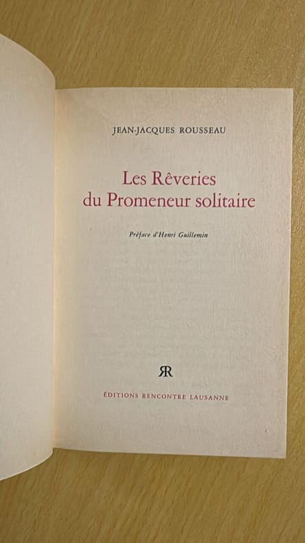 ÉDITIONS RENCONTRE LAUSANNE Sans date. Les Rêveries du promeneur solitaire est la dernière œuvre posthume et inachevée de Jean-Jacques Rousseau. Écrite dans les années précédant sa mort en 1778 elle se compose de dix méditations où l'auteur au fil de ses promenades mêle souvenirs réflexions philosophiques et confidences pour restituer les mouvements de son âme. L'ouvrage explore en particulier la tension entre son désir de solitude et son besoin de société