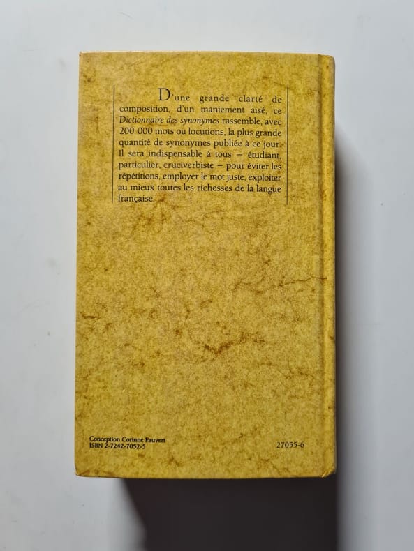 Un Dictionnaire des synonymes, qui est aussi un Dictionnaire des associations d'idées et un recueil d'antonymes. Classification Dewey : 443-Dictionnaire français