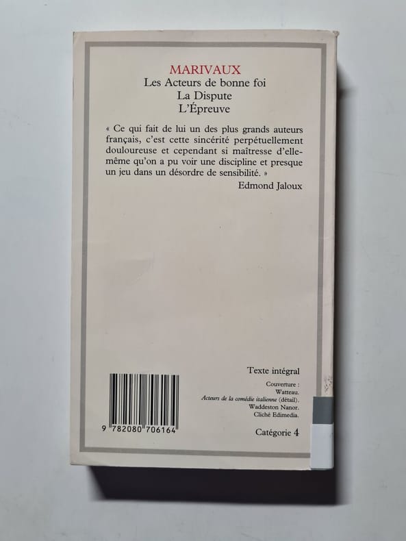 Flammarion Sans date. Comédie en un acte et en prose de Marivaux où une troupe d'acteurs prépare une pièce créant un jeu de mise en abyme qui explore subtilement les frontières entre réalité et fiction. L'œuvre à la fois légère et espiègle examine les intrications de l'amour et de l'ambition à travers ce dispositif théâtral
