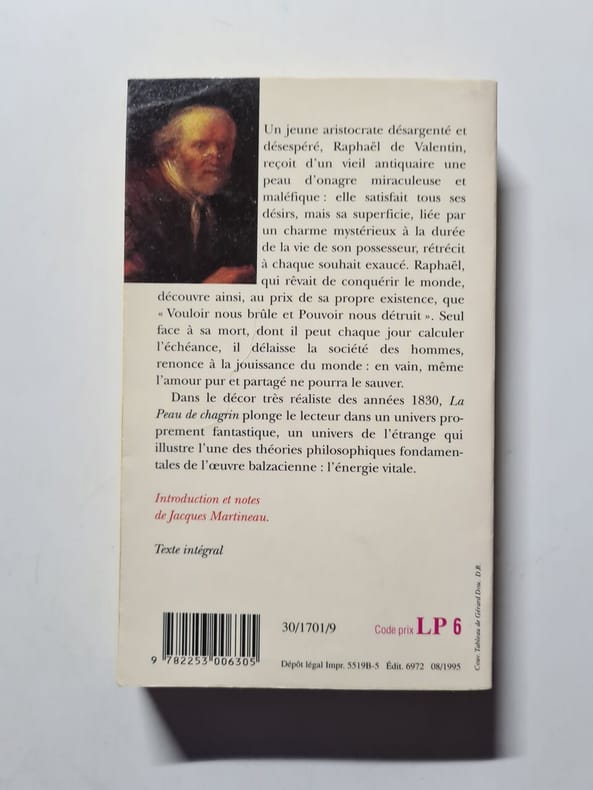 Hatier 1997 80 pages 16 8x10 6x0 8cm. 1997. Poche. 80 pages. Si tu me possèdes tu posséderas tout. Mais ta vie m'appartiendra. Dieu l'a voulu ainsi. Désire et tes désirs seront accomplis. Mais règle tes souhaits sur ta vie. Elle est là. A chaque vouloir je décroîtrai comme tes jours. Me veux-tu ? A cette invitation séduisante et provocante Raphaël répond par l'affirmative. Jeune homme malchanceux en proie au désespoir il rencontre un mystérieux antiquaire qui lui fournit une peau de chagrin support de cette formule qui résonne comme une incantation. Mais les pouvoirs de cet objet magique symbole de sa propre vie ne lui accorderont qu'un bref sursis. Cependant si la fatalité règne en maître absolu sur le destin de Raphaël les égarements de la nature humaine ne sont pas totalement étrangers à sa perte puisque c'est par l'usage inconsidéré qu'il fait de ce talisman qu'il précipite sa déchéance. De même si sa rencontre avec l'antiquaire est fortuite elle aboutit néanmoins à un geste inaugural délibéré. Premier volet des Etudes Philosophiques La Peau de chagrin conte empreint d'occultisme est une fable où le réalisme de Balzac se permet encore des détours par le surnaturel et où sa théorie du déterminisme n'en est encore qu'à ses débuts. --Sana Tang-Léopold Wauters