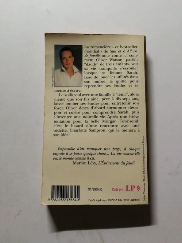 Le Livre de Poche 1994 375 pages 1994. 375 pages. La romancière - et best-seller mondial - de Star et d'Album de famille nous conte ici comment Oliver Watson parfait « daddy » de trois enfants voit sa vie tranquille s'écrouler lorsque sa femme Sarah lasse de jouer les utilités dans son ombre le quitte pour reprendre ses études et se mettre à écrire. Le voilà seul avec une famille à « tenir » alors même que son fils aîné père à dix-sept ans laisse tomber ses études pour entretenir son foyer. Oliver devra d'abord surmonter désespoir et colère pour comprendre Sarah puis s'inventer une nouvelle vie. Après une brève tentation pour la belle Morgan Townsend c'est le hasard d'une rencontre avec une vedette Charlotte Sampson qui le mènera à son idéal. Impossible d'en manquer une page à chaque virgule il se passe quelque chose... La vie comme elle va le monde comme il est. Marion Lévy L'Evénement du jeudi