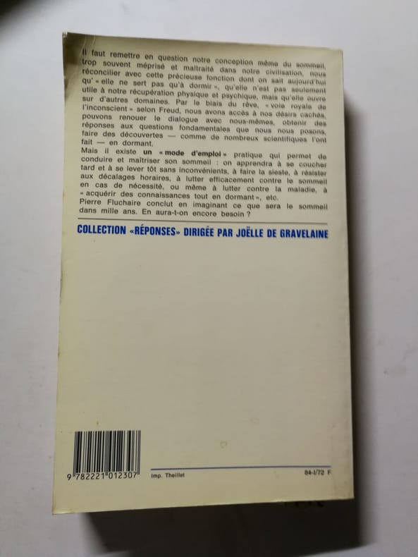 Robert Laffont Sans date. Pierre Fluchaire propose de remettre en question notre conception du sommeil souvent méprisé dans notre civilisation et de nous réconcilier avec cette fonction essentielle dont on sait aujourd'hui qu'elle ne sert pas qu'à dormir