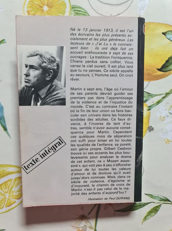 J'ai lu 1974 307 pages 11 0cm x 16 5cm x 1 5cm. 1974. broché. 307 pages. Martin a sept ans l'âge où l'amour de ses parents devrait guider ses premiers pas dans l'apprentissage de la violence et de l'injustice du monde. C'est au contraire l'instant où la fin de leur union va faire basculer son univers dans les histoires sordides des adultes va briser en lui toutes les qualités de l'enfance sa pureté son génie propre. Gilbert Cesbron trouve ici ses accents les plus bouleversants pour analyser le drame de cet enfant ce Mozart assassiné qui voit peu à peu s'effondrer autour de lui toutes les valeurs d'amour et de droiture qu'il avait jusqu'alors connues. Mais dans ce siècle de violence d'égoïsme et d'impureté le chemin de croix de Martin n'est-il pas celui de la majorité des enfants d'aujourd'hui