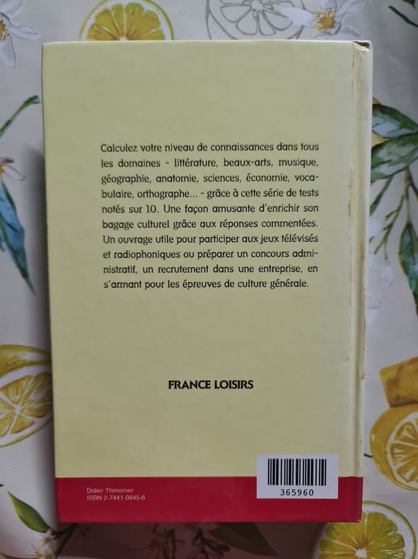 50 tests de culture générale. 50 tests de vocabulaire. 50 tests d'orthographe. Histoire-Géo. Littérature. Sciences... Classification Dewey : 370-Education