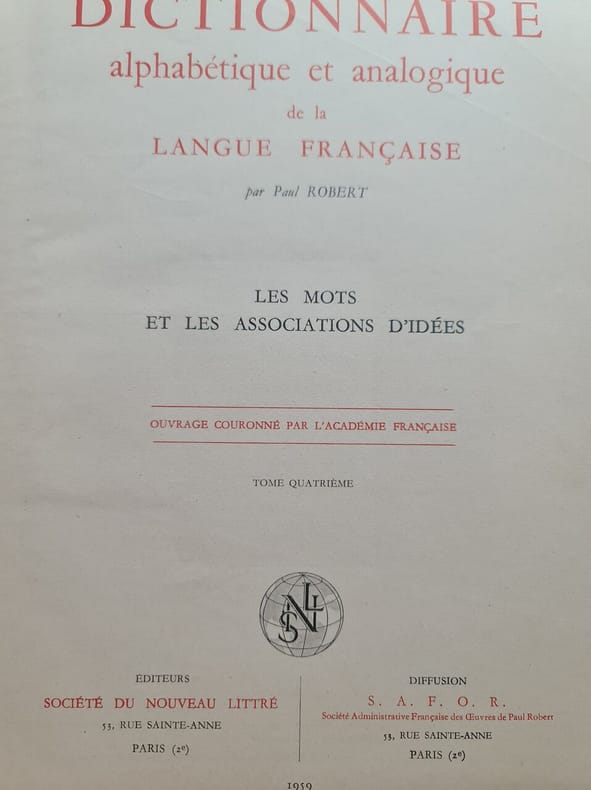Paul Robert Dictionnaire alphabétique et analogique de la langue française Les mots et les associations d'idées Tomes 1 à 6 Paris, Littré 1965 6 volumes reliés format : 31 x 23 cm