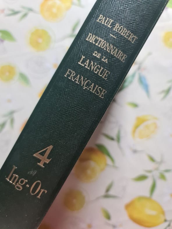 Société du Nouveau Littré – Le Robert 1978 In-4 reliure éditeur similicuir vert : vol 1-7 dictionnaire alphabétique et reliure similicuir violine : vol 1-4 dictionnaire des noms propres. Dos avec titres dorés et report titres sur les plats. 30,5 cm sur 22,5. VII+ 1077- 893- 898- 899- 894- 887+ 28- XXI+ 514- XXXVII +751- 863- 815- 751 pages. Accrocs sur les coiffes supérieures du vol 3 et 4 du dictionnaire alphabétique, infimes frottements sur les plats sinon bon état d’occasion.