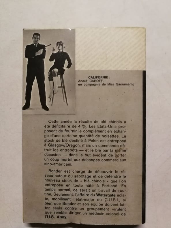 Fleuve Noir Sans date. L'agent secret Bonder est envoyé enquêter après la destruction d'un stock de blé destiné à la Chine entreposé aux États-Unis un sabotage qui vise à compromettre les relations commerciales entre les deux pays