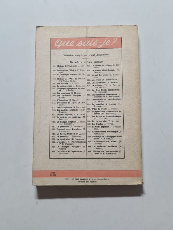 Presses Universitaires de France 11,5 x 17,5 Couverture souple Paris 1959 Broché, 122 p. Collection "Que sais-je ?", n°824. Exemplaire jauni, mais solide(CC4) Livre