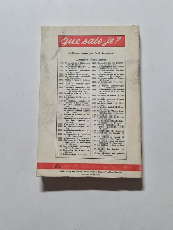 Presses Universitaires de France Edition originale Première édition 4ème trimestre 1964. 1964. In-12. Broché. Bon état, Couv. convenable, Dos satisfaisant, Intérieur frais. 128 pages illustrées de quelques dessins en noir et blanc. . . . Classification Dewey : 300-SCIENCES SOCIALES