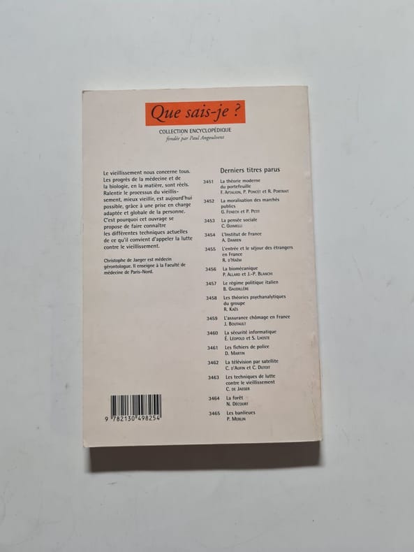 puf Sans date. Cet ouvrage présente et analyse les différentes techniques médicales et scientifiques permettant d'intervenir sur le processus de vieillissement pour prolonger la longévité humaine. Il examine également les implications culturelles et sociales de cet allongement de la durée de vie