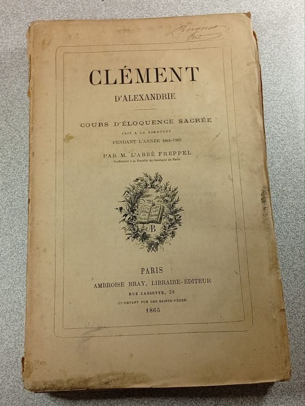 ---- EDITION ORIGINALE de ce cours donné à la Sorbonne par l'Abbé FREPPEL ---- BEL EXEMPLAIRE ---- Coup d'oeil général sur l'école chrétienne d'Alexandire ; rôle qu'elle a joué dans cet espace de temps qui sépare les Pères apostoliques des orateurs et des théologiens du IVe siècle - Origine de l'église d'Alexandrie - Premiers maîtres de l'école d'Alexandrie - Rôle de la philosophie grecque par rapport au christianisme - Le traité du Pédagogue - Rapport de la foi avec la science - etc**1268/Q2