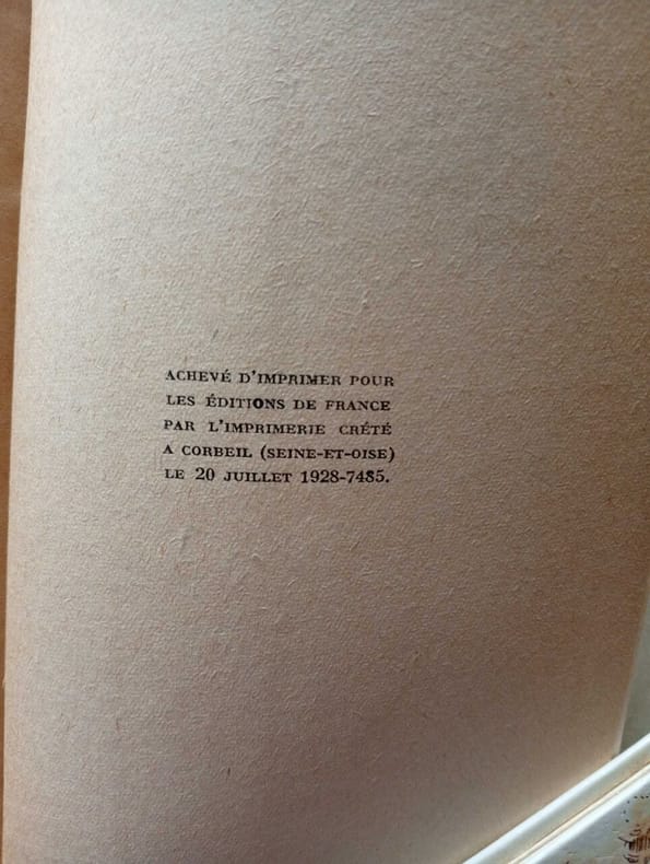 1927 Paris, les Editions de France, 1927 - Edition Originale, sur Vélin pur fil Lafuma, numérotée N° 100/240 signé par l'auteur - In-12, 21 x 13,5 cm - Broché - couverture illustrée, défraîchie, Sinon bel exemplaire, très frais intérieurement, Exemplaire non coupé - 273 pages - Réf. 47763.