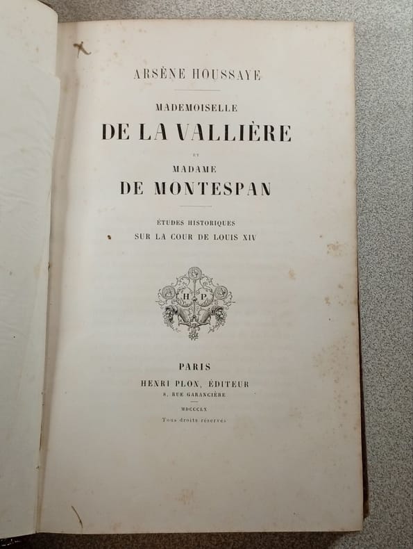 Paris HENRI PLON 1860 un volume in-8°, (4) 424 pp. Reliure en demi-basane rouge, dos à faux nerfs orné du titre, de l'auteur, de roulettes et de fers dorés (reliure époque). (dos légèrement frotté et salie). Un portrait-frontispice représentant mademoiselle de La Vallière et un portrait de la marquise de Montespan. Intérieur frais. Ex-libris sur le frontispice répété sur le titre (cachet gaufré).