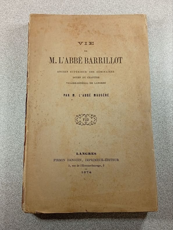 Langres, Dangien, 1874. Format 15x23 cm, broche, 328 pages. Ouvrage complet mais en tres mauvais etat, merite surement une reliure. Mauvais etat.