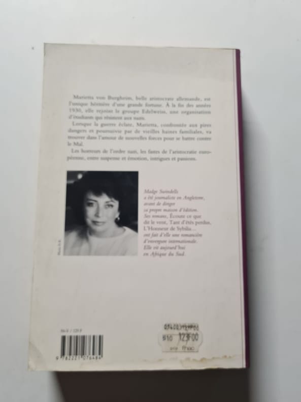 Robert Laffont 1994 554 pages in8. 1994. broché. 554 pages. marietta von burgheim belle aristocrate allemande est l'unique héritière d'une grande fortune. à la fin des années 1930 elle rejoint le groupe edelweiss une organisation d'étudiants qui résistent aux nazis. lorsque la guerre éclate marietta confrontée aux pires dangers et poursuivie par de vieilles haines familiales va trouver dans l'amour de nouvelles forces pour se battre contre le mal. les horreurs de l'ordre nazi les fastes de l'aristocratie européenne entre suspense et émotion intrigues et passions