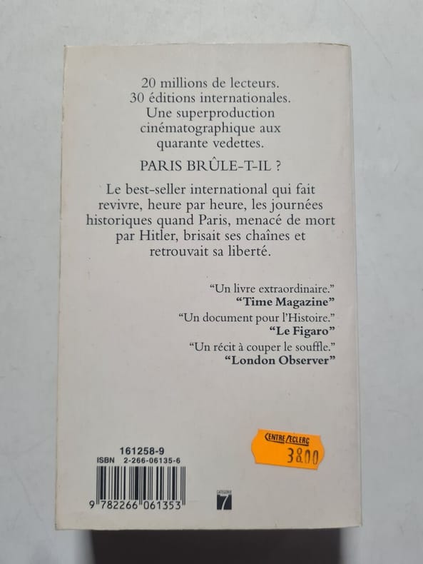 “Paris brûle-t-il ?” est le récit passionné de l'une des journées les plus fantastiques de l'histoire du monde. Ce jour du 25 août 1944, la capitale de la France échappait à l'anéantissement apocalyptique ordonné par Adolf Hitler ; Paris brisait ses chaînes et acclamait ses libérateurs dans un torrent d'émotions, de drames et de joies. Best-seller mondial porté au cinéma dans une superproduction aux quarante vedettes internationales, “Paris brûle-t-il ?” est le premier grand livre-épopée du célèbre tandem littéraire Dominique Lapierre et Larry Collins. C'est peut-être aussi, par le nombre des secrets révélés et la richesse du récit, leur chef-d'œuvre. — "Pour la préparation de “Paris brûle-t-il ?” les auteurs, assistés d'une équipe de collaborateurs en France, en Allemagne et aux États-Unis, se sont penchés sur des centaines (le documents, d'études historiques, de messages radio et de câbles vieux de vingt ans. Ils ont étudié des centaines de mètres de microfilms (les rapports saisis chez Hitler et ses généraux. Ils ont consulté les archives du commandement d'Eisenhower et du SHAEF dans leur dépôt d’Alexandria, Virginie, ainsi que tous les originaux de la correspondance échangée entre de Gaulle, Churchill, Roosevelt et Eisenhower; également les messages échangés entre la Résistance à Paris et l'état-major des Français libres à Londres. Ils ont interviewé des centaines d'Allemands, de Français et d'Américains, du général Eisenhower au général von Choltitz, dernier commandant allemand de Paris, et au Parisien qui hissa, le premier, le drapeau tricolore au sommet de la tour Eiffel, le jour de la Libération, le 25 août 1944. Leur œuvre fait revivre, à travers sa documentation minutieuse et son expression passionnée, la lutte de Paris pour sa vie et sa liberté. C'est le récit haletant des journées pendant lesquelles, par miracle, Paris échappa à la destruction à laquelle Hitler l'avait condamnée; des conflits politiques qui entourèrent sa libération et opposèrent publiquement, et parfois de façon inexorable, Charles de Gaulle, ses alliés américains et ses compatriotes communistes." — "Ce n'est pas seulement le 25 août 1944 mais les vingt-cinq premiers jours de ce mois que font revivre deux journalistes, français et américain. La thèse qu'ils soutiennent tout au long de ces pages est que l'histoire de la libération de Paris, c'est l'histoire de la lutte pour le pouvoir entre communistes et gaullistes ; cette thèse est pour le moins contestable, et elle a en tout cas été fortement contestée. Cela dit, l'aspect anecdotique du récit peut plaire." (Revue française de science politique, 1965)