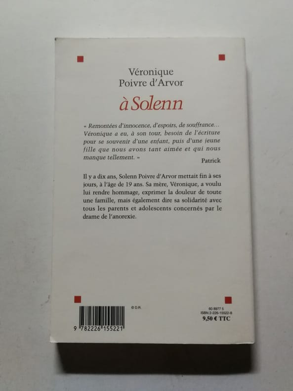 ALBIN MICHEL 2026 144 pages 13x1 3x20cm. 2026. mass_market. 144 pages. Véronique Poivre d'Arvor rend hommage à sa fille Solenn décédée par suicide à l'âge de 19 ans après avoir souffert d'anorexie. À travers ce livre elle exprime la douleur de sa famille et témoigne de sa solidarité avec les parents et adolescents confrontés à ce drame