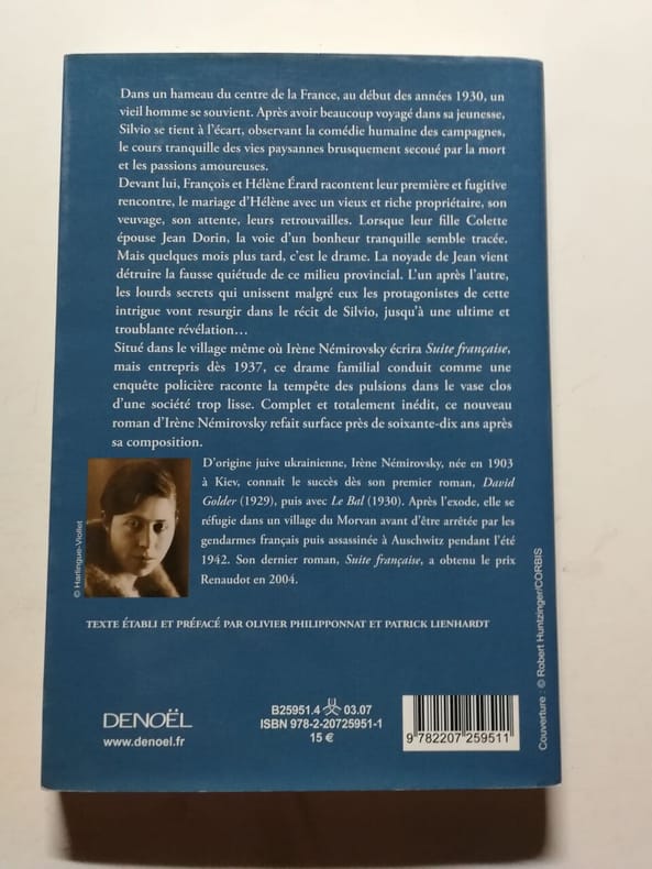 Texte établi et préfacé par Olivier Philipponnat et Patrick Lienhardt. Un roman posthume retrouvé en 2005, soixante ans après son écriture, dans les archives de la famille. ˮSitué dans le village même où Irène Némirovsky écrira Suite française, mais entrepris dès 1937, ce drame familial conduit comme une enquête policière raconte la tempête des pulsions dans le vase clos d'une société trop lisse. Complet et totalement inédit, ce nouveau roman d'Irène Némirovsky refait surface près de soixante-dix ans après sa composition.ˮ