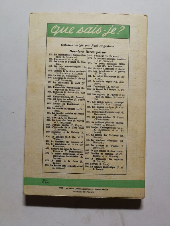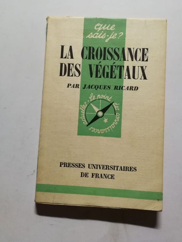 Presses Universitaires de France Sans date. La croissance des végétaux est un ouvrage scientifique de Jacques Ricard publié en 1960 dans la collection Que sais-je ? des Presses Universitaires de France. Il traite du processus de croissance des plantes