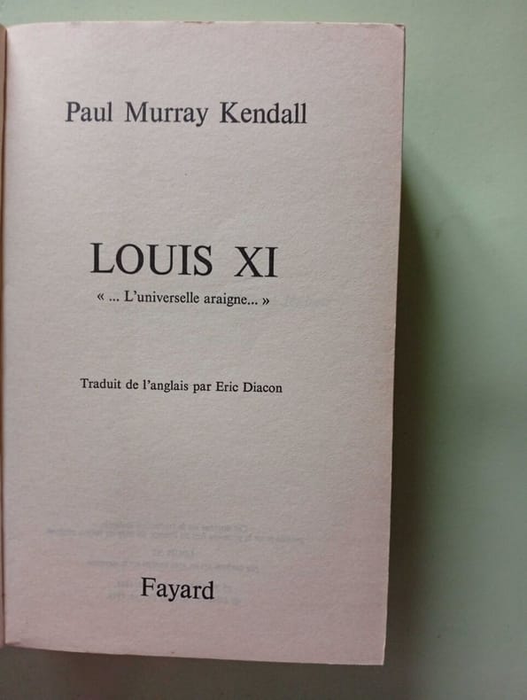 Fayard 1975 13x21x5cm. 1975. Broché. Cette biographie de Paul Murray Kendall sur Louis XI (règne de 1461 à 1483) est présentée comme un ouvrage classique et passionnant. Elle dépeint un roi complexe brillant et peut-être trop moderne pour son temps en mettant en lumière sa personnalité diverse son habileté politique et son œuvre de centralisation du royaume de France tout en replaçant son action dans le contexte d'une Europe en mutation