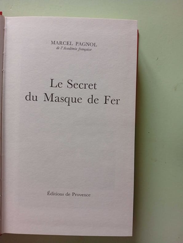 Editions de Provence 1973 1973. Marcel Pagnol dans cet essai historique publié en 1965 tente de résoudre l'énigme du Masque de fer le célèbre prisonnier anonyme mort à la Bastille en 1703. Il passe en revue et démonte les hypothèses les plus plausibles avant de proposer sa propre thèse identifiant le prisonnier comme étant le frère jumeau de Louis XIV né après lui et emprisonné à vie en 1669