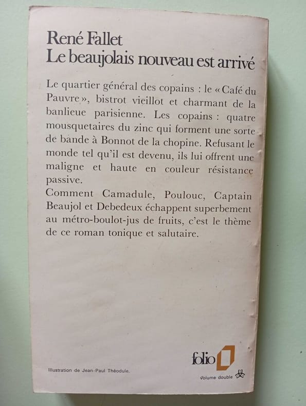 Denoël Sans date. Roman de René Fallet paru en 1975 qui raconte l'histoire de quatre amis marginaux refusant la monotonie de la vie moderne et trouvant refuge dans leur bistrot de banlieue. C'est une ode à l'amitié à la liberté et à la résistance passive face aux conventions sociales écrite avec verve et sensibilité