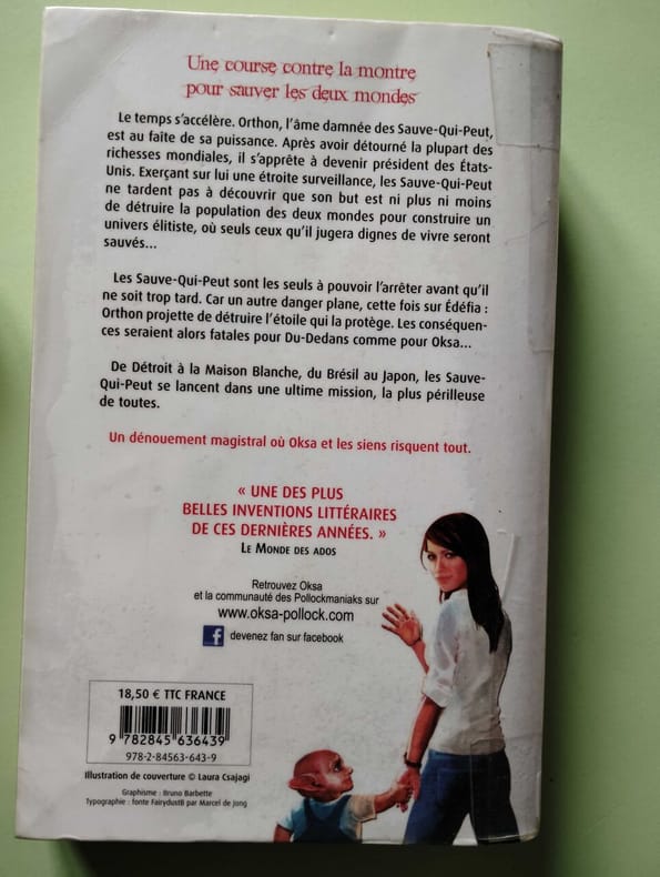 XO Editions 2013 391 pages 15 4x3 8x23 6cm. 2013. Broché. 391 pages. Sixième et dernier tome de la série Oksa Pollock ce livre conclut la saga fantasy jeunesse. L'héroïne Oksa Pollock doit mener une course contre la montre pour sauver les Deux Mondes face à Orthon l'antagoniste des Sauve-Qui-Peut qui a détourné les richesses mondiales et aspire à devenir président des États-Unis afin de créer un nouvel univers où il régnerait en maître