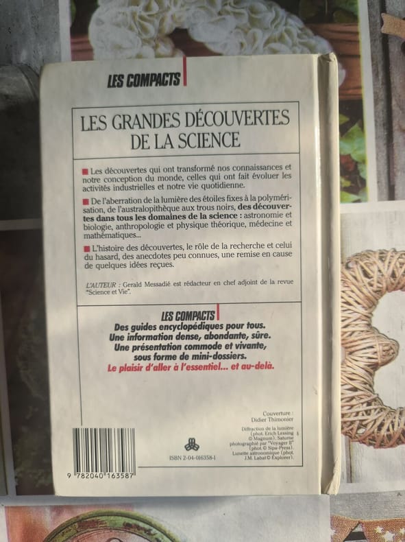 Bordas Sans date. Ouvrage de vulgarisation scientifique publié en 1987 par Bordas présentant les principales découvertes scientifiques à travers l'histoire. Le livre s'adresse à un public cherchant à comprendre l'évolution des connaissances scientifiques