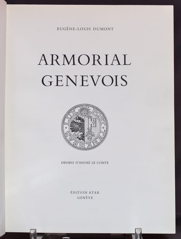 L'auteur, J.-D. Blavignac (Genève 1817-1876), était architecte et exerça quelque temps les fonctions de conseiller municipal de sa ville natale. “Il s'est fait connaître par de savants travaux...” (A. de. Montet, Dictionnaire biographique des Genevois I/63). Régis de Courten & B. de Vevey Schweiz. Wappenbücher, 1967, - (pas dans l'inventaire). Image disp.