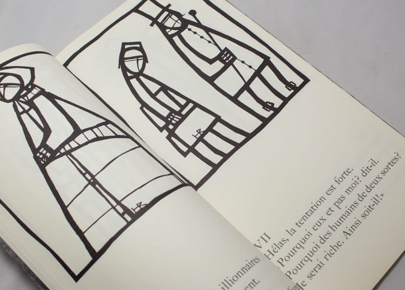 Le premier volume comporte un long poème dont chaque quatrains occupe une page et est illustré d'un bois gravé imprimé en gris de Robert Héritier, à qui l'on doit aussi les images du foulard en soie. Le second volume se compose des partitions en fac-similé autographe de la mise en musique de ce poème par Georges Haenni. Du beau foulard de soie accompagnant habituellement cet ouvrage ne reste, hélas, que la chemise blanche muette.