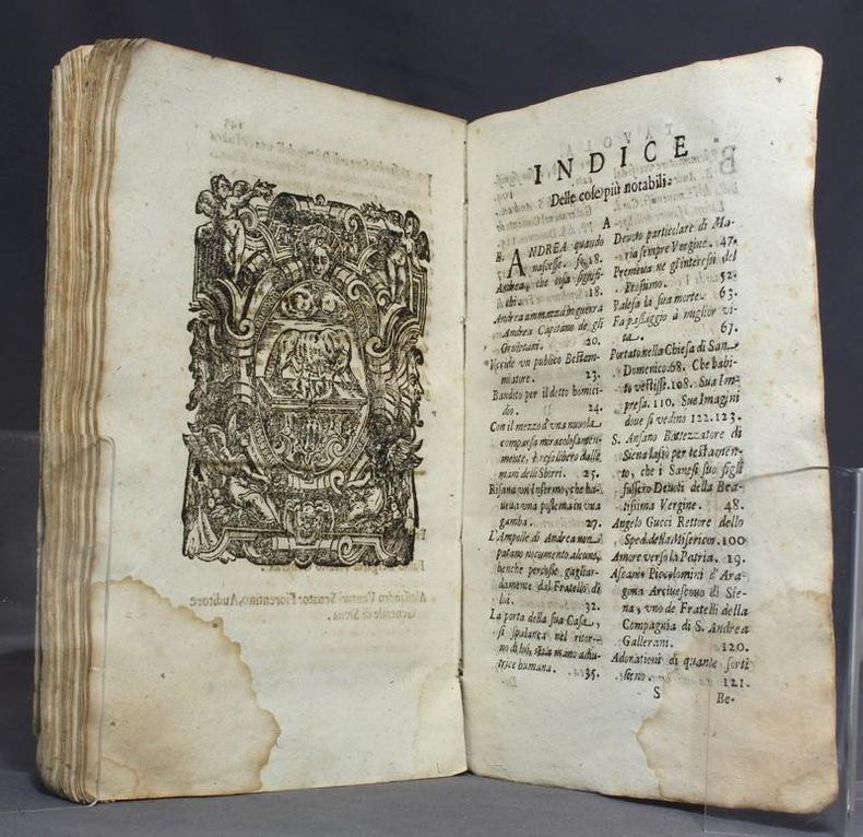 Illustré d'un beau titre gravé et d'une large gravure en fin de volume, précédant la table. Ex libris volant en découpe, "Ginevra Petrucci nata Sansedoni". !!! !!! Du 3 octobre au 24 octobre il n'y aura pas d'expédition de colis: le libraire est en voyage. La librairie reste ouverte et nous répondrons sporadiquement aux emails. Merci pour votre compréhension. ––> From 3 October to 24 October, there will be no parcel deliveries as the bookseller will be travelling. The bookshop will remain open and we will respond to emails sporadically. Thank you for your understanding.