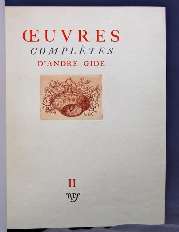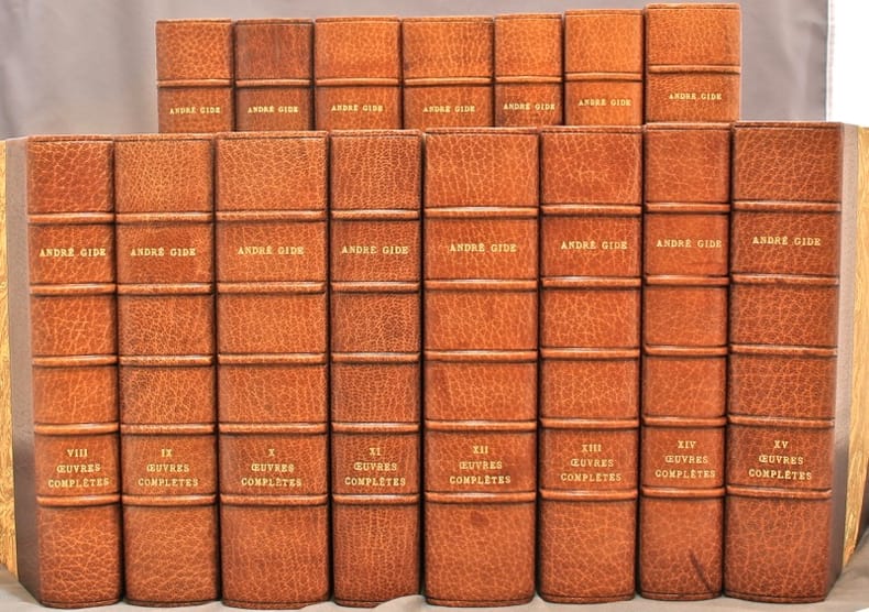 Chaque volumes comporte un portrait de Gide en frontispice. Première édition des oeuvres complètes d'André Gide, au tirage limité à 3232 exemplaires, celui-ci parmi les 155 sur Hollande Pannekock, un des 150 numérotés en romain (CXXIII). Dos légèrement et uniformément passés, quelques infimes frottements, belle condition générale cependant.