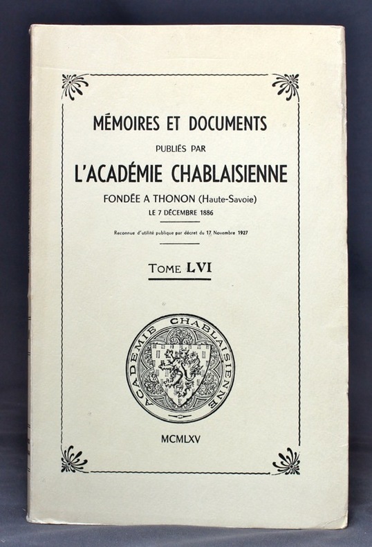 [Thonon-les-Bains], Académie chablaisienne, 1965. In-8 broché de LXIV-135-[5] pages, couverture imprimée ornée d'une vignette.