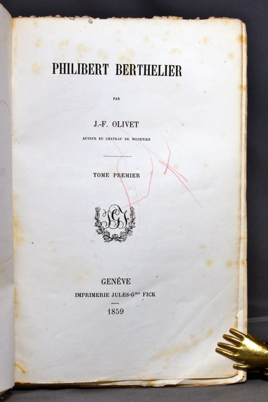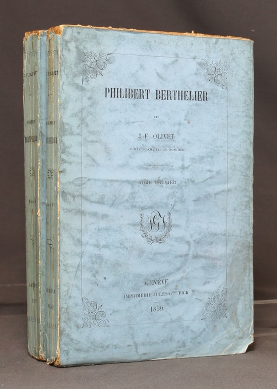 Philibert Berthelier fut l'un des pères de l'indépendance genevoise. Couvertures tachées avec petits accrocs en bords, pâles rousseurs, traits de crayon rouge en page de titre du premier volume. !!! !!! Du 3 octobre au 24 octobre il n'y aura pas d'expédition de colis: le libraire est en voyage. La librairie reste ouverte et nous répondrons sporadiquement aux emails. Merci pour votre compréhension. ––> From 3 October to 24 October, there will be no parcel deliveries as the bookseller will be travelling. The bookshop will remain open and we will respond to emails sporadically. Thank you for your understanding.