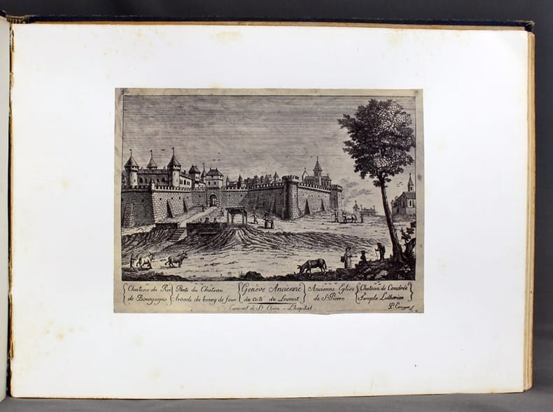 20 reproductions de vues de Genève par Pierre Escuyer, contrecollées sur papier fort et séparées par des feuillets blancs. Reliure frottée, rousseurs, cahiers déboîtés mais solidaires. Note sur Escuyer à la page de titre, au crayon à papier.