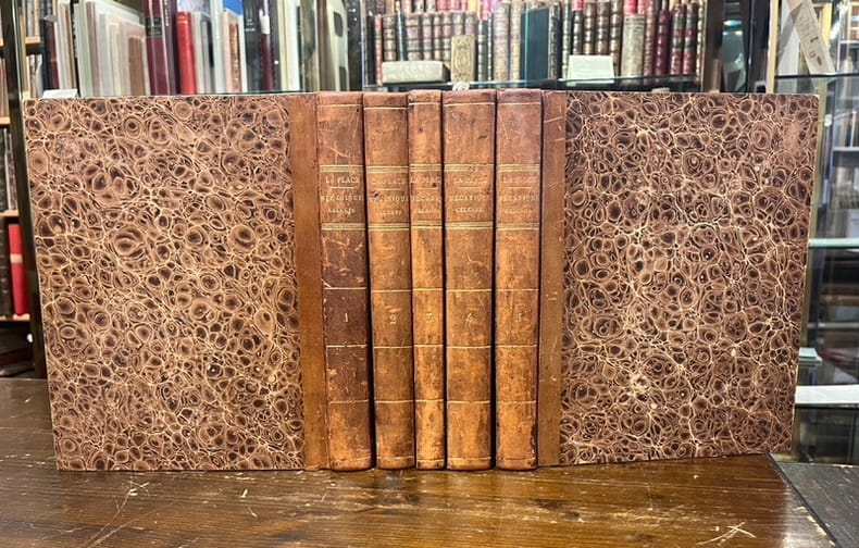 Paris, J.B.M. Duprat; Bachelier, 1798-1825. 5 volumes in-4 de XXXII-368; [4]-382; XXIV-303-[1]; XL-347-[1]-[2]-65-[1]-[2]-78-[2]; VIII-419-[1] pages, demi-veau brun, dos lisses ornés de filets dorés, tranches jaunes.