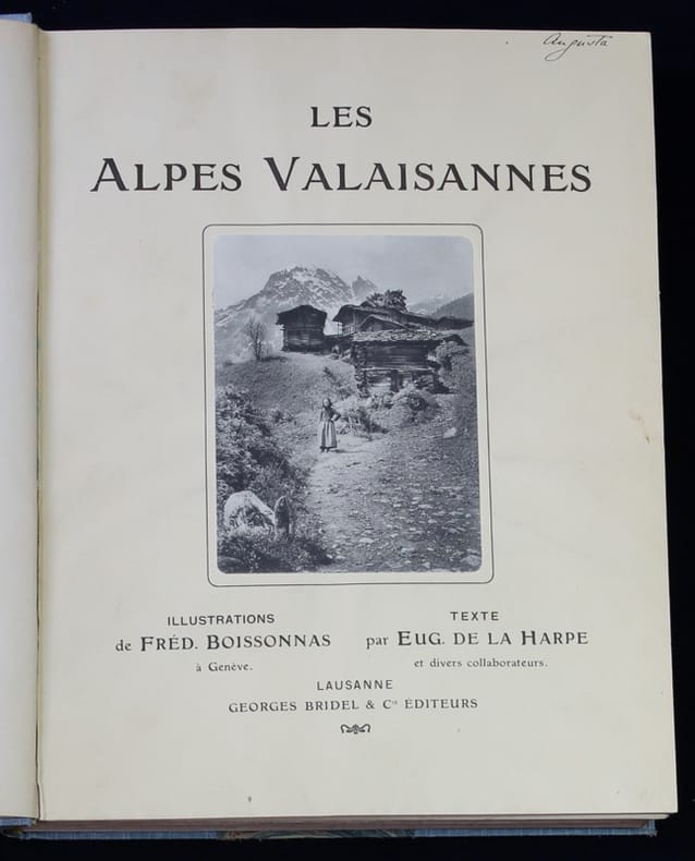 Illustré de 2 vignettes contrecollées aux premiers plats de couverture, d'un frontispice et de très nombreuses photographies in-texte en noir, le tout de Fred. Boissonnas. Exemplaire de la "mie" de Fred Boissonnas: Augusta, comme en attestent son prénom au premier plat de la première livraison mais plus encore le tendre envoi autographe signé Son Fred et daté du premier janvier 1912, sur la couverture du second volume. Bel ouvrage, belle provenance.