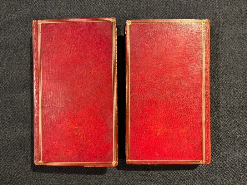 Paris, Eugène Onfroy, 1785. 2 volumes in-12 de [4]-324-[4]; [4]-288 pages, plein maroquin rouge, dos lisse orné de filets et fleurons dorés, triple filets dorés encadrant les plats. Etiquette du relieur Derôme le jeune.