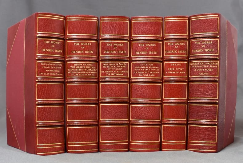 New York, Willey Book Company, 1912. 12 parties en 6 forts volumes in-8, demi-maroquin bordeaux à coins, dos à 5 nerfs ornés de roulettes, filets, encadrements et titre dorés, filets dorés sur les plats, tranches dorées, gardes marbrées. Reliures signées Asprey & Co.